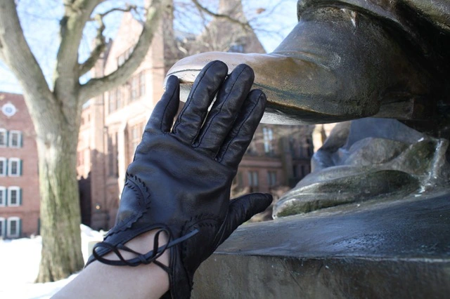 Students and visitors rub the toe of a bronze statue of former Yale president James Dwight Woolsey for good luck, especially prospective high school students aiming to get into the university. This tradition is one of the most renowned university customs globally, witnessed at Yale University.