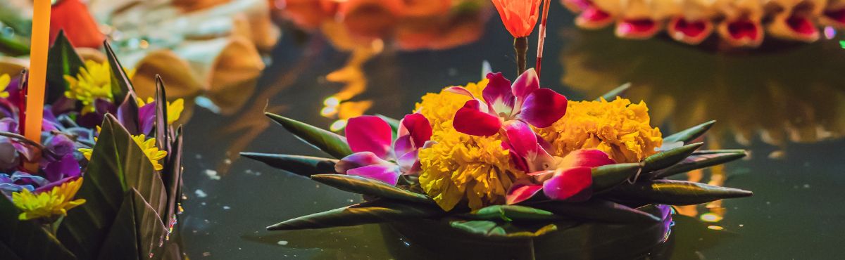 Loy Krathong is a traditional Thai festival celebrated annually on the full moon night of the twelfth lunar month, typically in November. During this enchanting festival, people release small, beautifully decorated floats onto rivers, lakes, and water bodies, as an expression of gratitude to the water goddess and a way to symbolically float away their troubles and bad luck. The festival is marked by candle-lit processions, cultural performances, and fireworks.