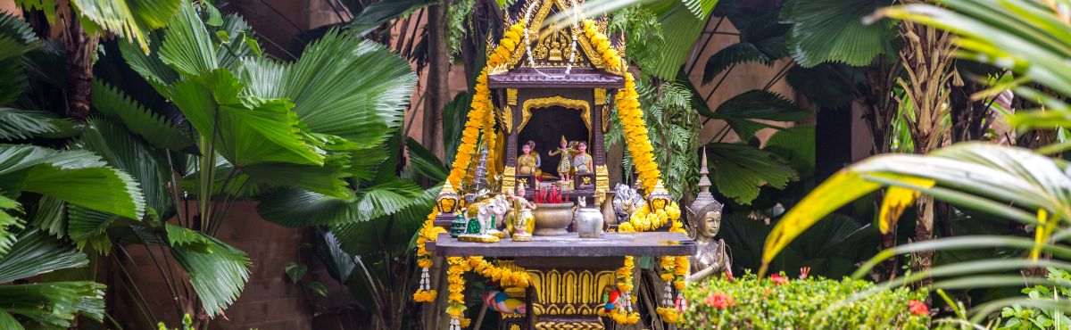 Many Thai homes, businesses, and public spaces have miniature spirit houses to offer shelter, protection, and offerings to guardian spirits who are believed to reside on the premises. Thai people believe that these spirits can bring both blessings and misfortune, so they maintain the spirit houses to maintain a harmonious relationship with them.