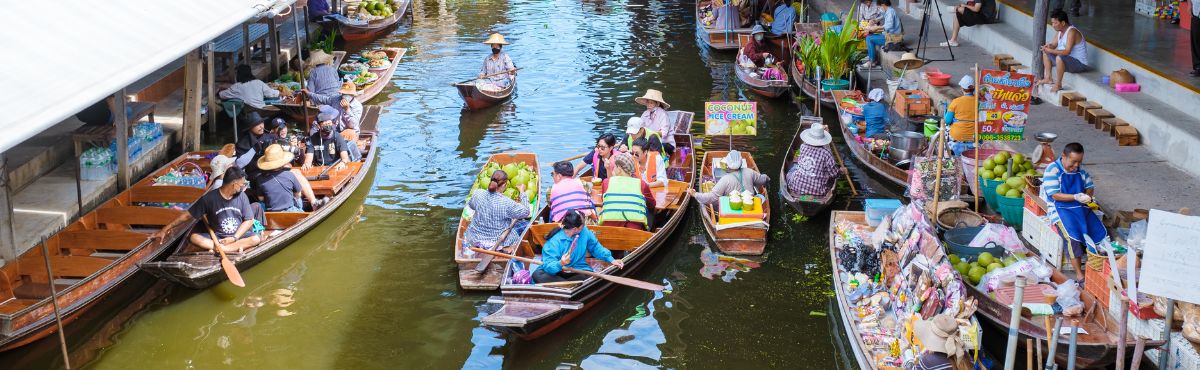 Though there are a few traditional floating markets left today, Thailand's canals and waterways have historical significance as they were once the country's main mode of transport and trade. At the markets, many vendors were skilled artisans who inherited their trades from generation to generation.