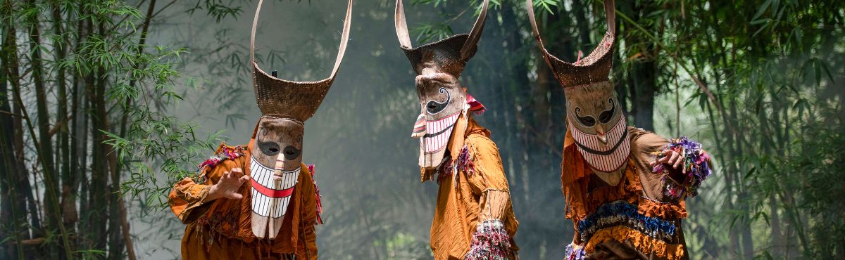 The Phi Ta Khon Festival celebrated in Thailand's Dan Sai district, is a lively and colorful event known for its masked participants and vibrant parades. During the festival, locals don intricate masks made of woven bamboo, wear colorful costumes, and engage in joyful processions accompanied by traditional music and dance. It also holds religious significance, incorporating beliefs in spirits and ancestral reverence.