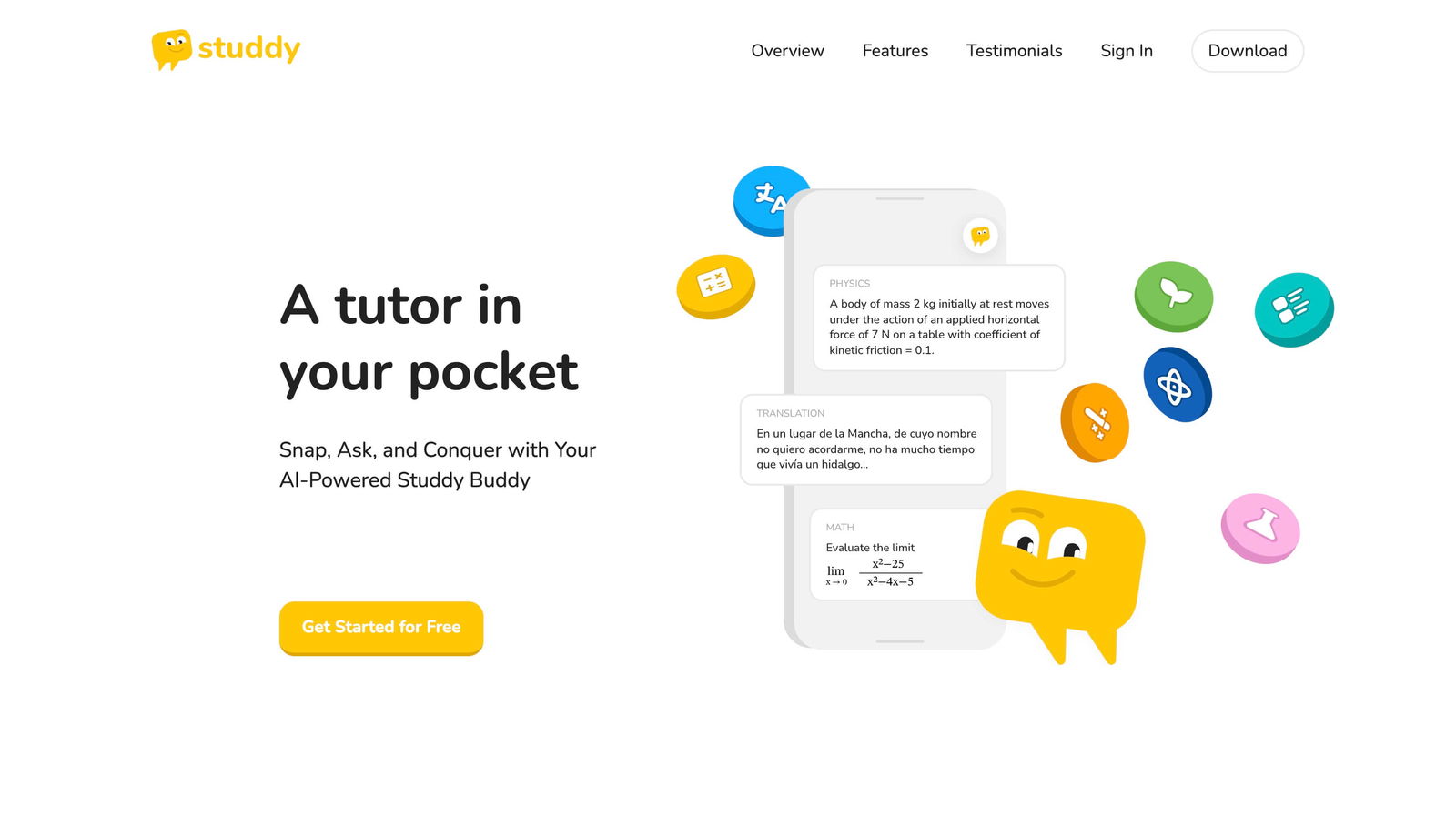 Studdy AI positions itself as a versatile and comprehensive digital tutor that fits right in your pocket. It's designed to assist students across a variety of subjects, particularly excelling in mathematics and science disciplines such as algebra, geometry, calculus, statistics, and physics. The tool is tailored to enhance learning through a structured, step-by-step methodology that breaks complex problems into manageable parts. This approach helps students like you to understand underlying concepts and solve challenging problems more effectively.