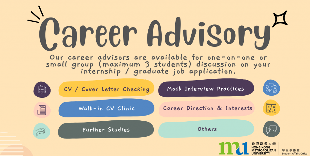 The Student Affairs Office at Hong Kong Metropolitan University (HKMU) has a dedicated Student Career Services team to help students prepare for their career.