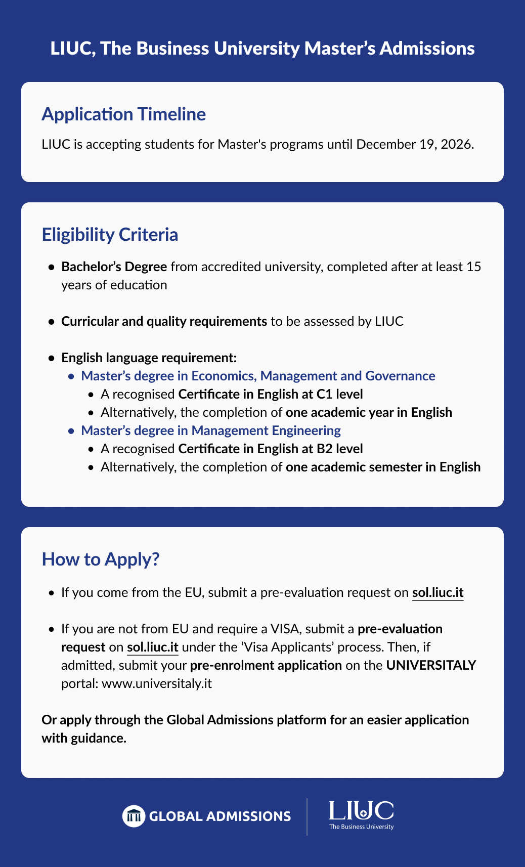 LIUC is accepting students for Master's programs until December 19, 2026.