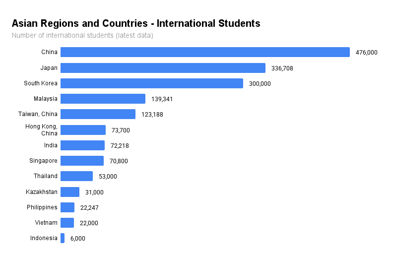 Indonesia reported a 38% rise in student interest and is positioning itself as a Southeast Asian education powerhouse. Around 6,000 international students are currently studying in Indonesia, many coming from nearby Malaysia.