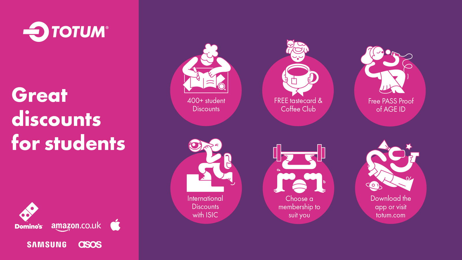 - UK - Totum (formerly NUS Extra) Card: This card gives students in the UK access to over 200 discounts and offers in the UK, on food, fashion, entertainment, health, and more. For example, you can get discounts of up to 40% on pizza, 10% on clothes, and 25% on cinema tickets. It costs £12 for a year. Learn more: totum.com