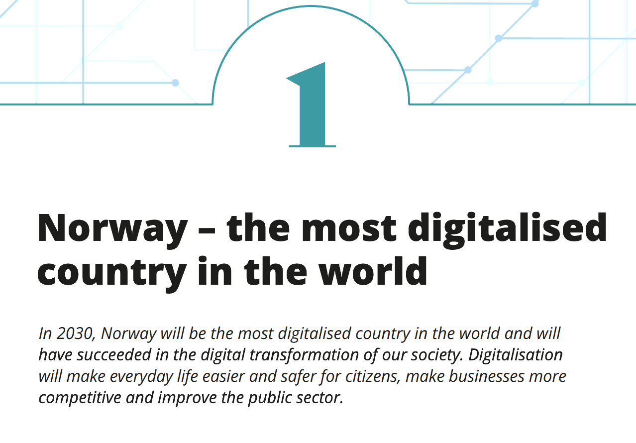 Backed by this financial stability, the Norwegian Ministry of Digitalisation has set a bold goal: To become the most digitalised country in the world by 2030.