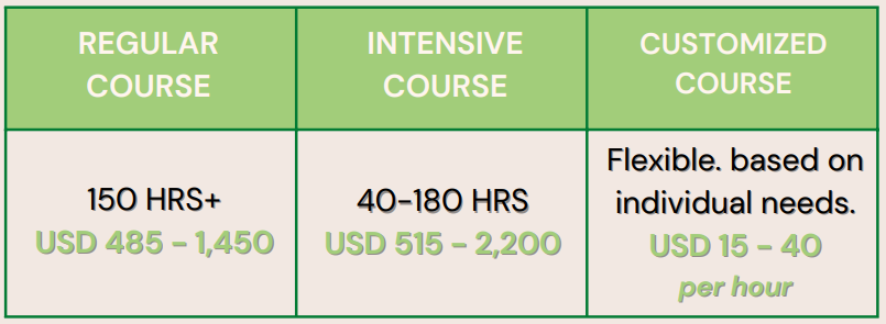 There are multiple different courses students can take. The fees to study Chinese in Taiwan are as follows: