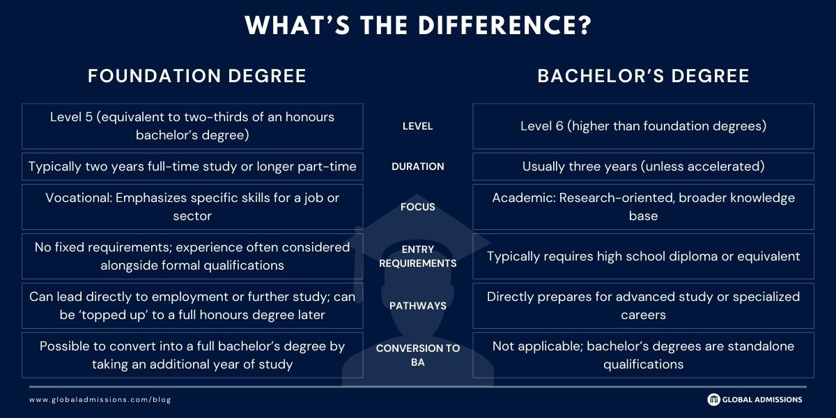 How is a foundation degree different from a bachelor’s degree?
